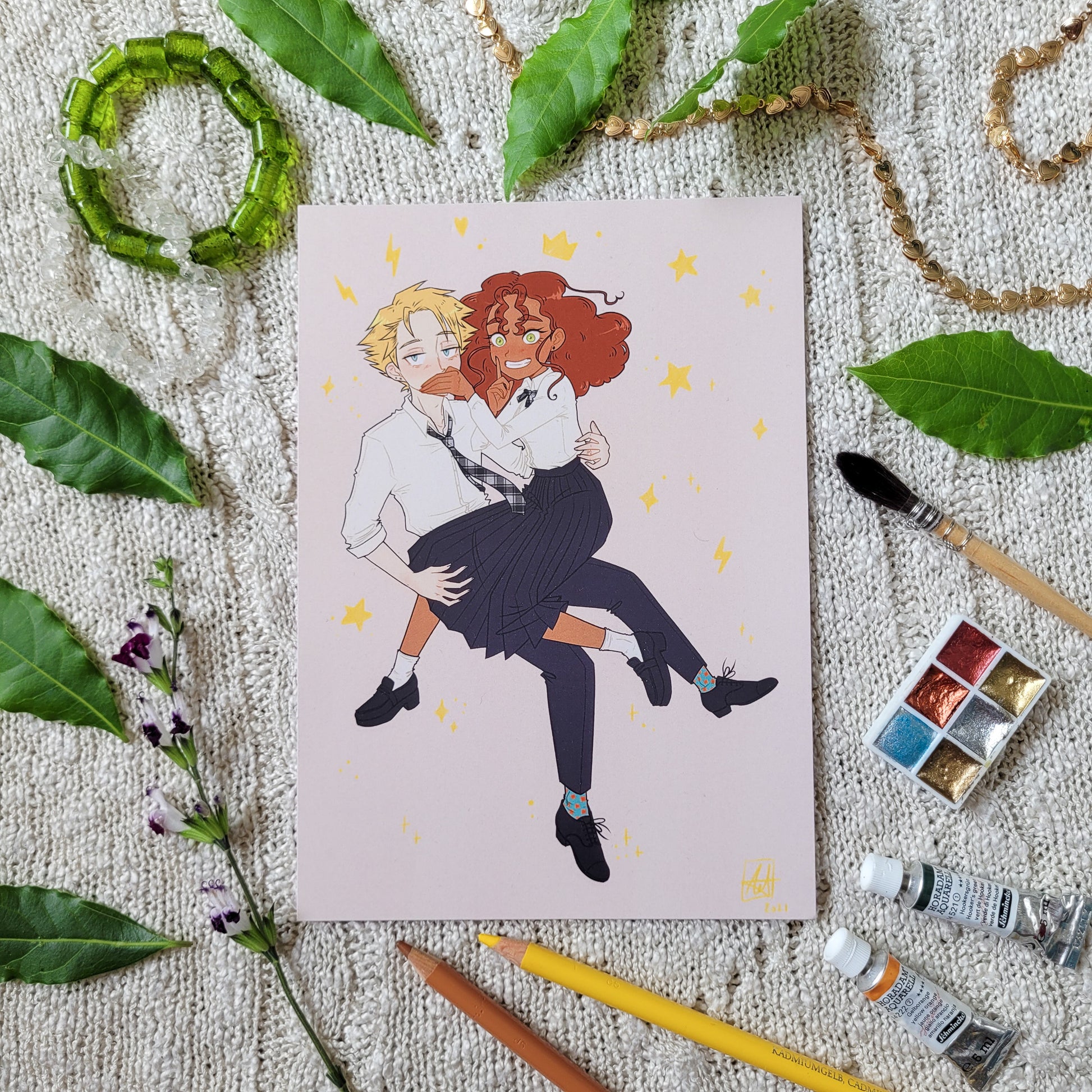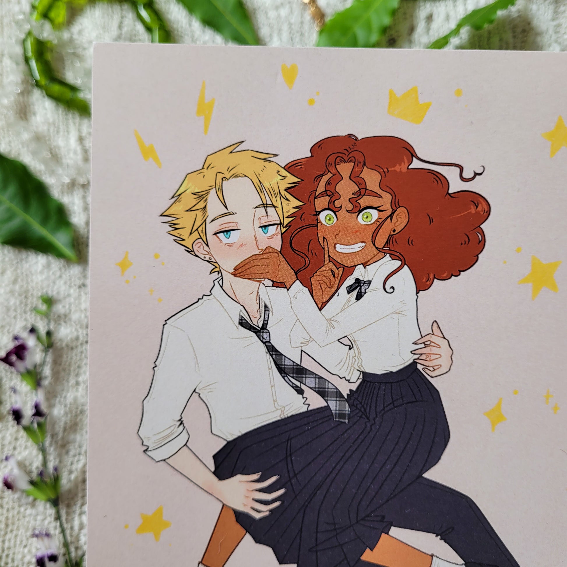 Impression de mon illustration Alister & Eberlyn, les deux personnages principaux de mon ancien projet pour le concours webtoon secret (pas si secret) ! Un merci tout spécial aux personnes qui commanderont ce print de mes deux bébés 💕