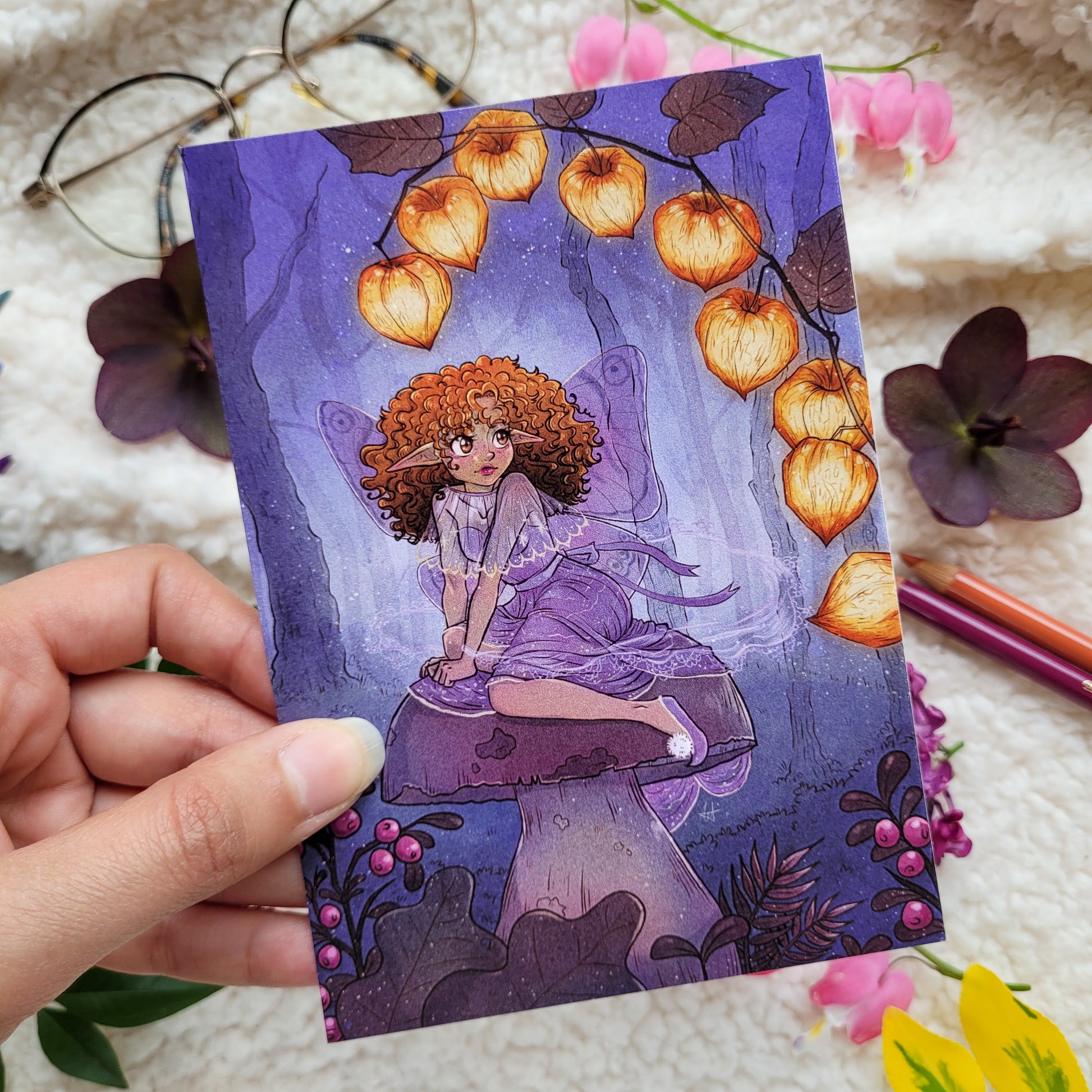 Plongez aux cœur de la forêt pour une pause enchantée sous la lumière des physalis en compagnie de cette fée rêveuse 🧚
